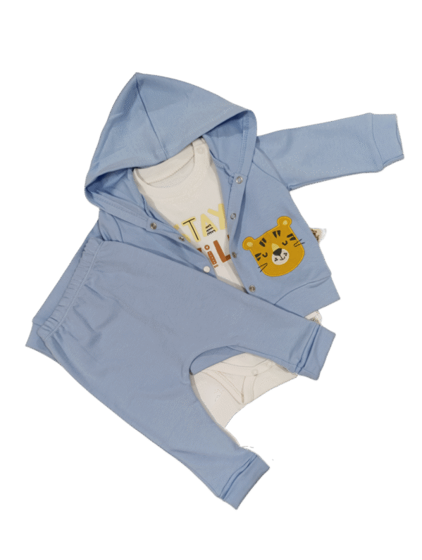 Setul pentru copii prezentat este realizat din bumbac 100% de cea mai bună calitate, produs cu atenție în Turcia pentru a oferi confort maxim și siguranță celor mici. Setul conține o bluză crem cu mânecă lungă, cu imprimeu adorabil de ursuleț și detalii cu mesaje “great gift for you”, având o mânecă decorată cu dungi la modă, care oferă un aspect vesel și modern. Pantalonii asortați completează perfect ținuta, fiind comozi și ideali pentru orice activitate zilnică, grădiniță sau joacă. Acest set este potrivit pentru sezonul rece, fiind o alegere inspirată pentru copii energici și încrezători.