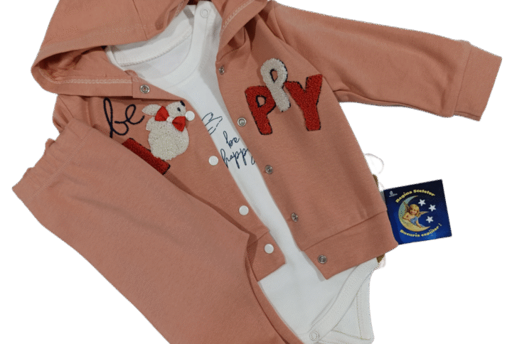 Setul pentru copii este compus din trei piese: hanorac gri cu glugă și urechiușe decorative, tricou alb cu imprimeu și pantaloni asortați, totul realizat din bumbac 100% premium, produs în Turcia. Hanoracul se închide cu capse pentru o îmbrăcare ușoară și are un design atractiv, cu detaliu de tigru pe piept și glugă comodă. Tricoul este decorat cu imprimeu vesel “Year of the Tiger”, iar pantalonii elastici oferă libertate deplină de mișcare și confort pe tot parcursul zilei. Setul este ideal pentru activități zilnice, grădiniță sau plimbări, fiind alegerea perfectă pentru copii activi și veseli.