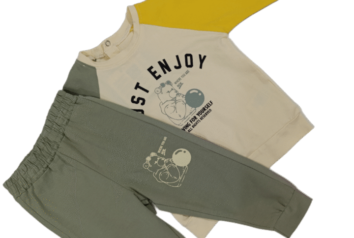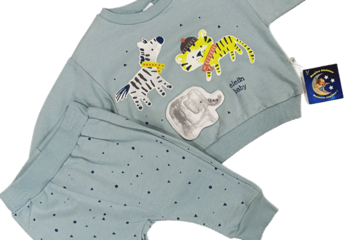 Acest set adorabil pentru copii este format din 3 piese, perfect pentru cei mici: o bluză cu glugă și imprimeu vesel, un body confortabil și pantaloni asortați, toate realizate din bumbac 100% moale și respirabil.