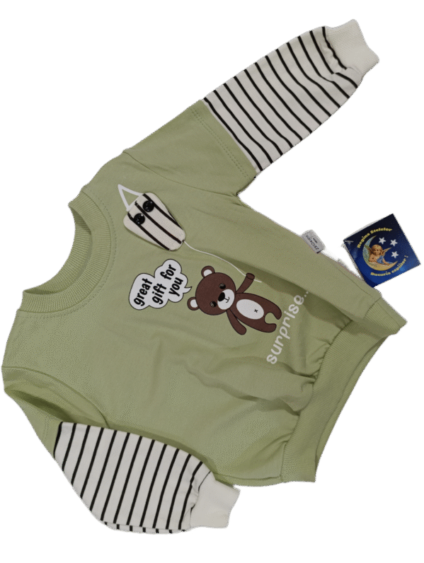 Această rochiță delicată pentru fetițe este realizată dintr-un amestec de 80% bumbac și 20% poliester, oferind un confort sporit și o textură plăcută la atingere.