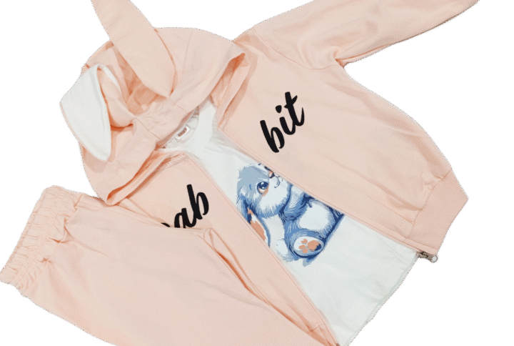 Setul din imagine este un costum pentru copii, realizat din bumbac 100% și fabricat în Turcia. Acesta conține un hanorac roz pal cu închidere la capse și mâneci lungi, alături de pantaloni cu talie elastică și imprimeuri colorate, viu și jucăuș, cu animale și forme botanice. Materialul natural, moale și respirabil, asigură confortul optim pentru pielea delicată a copilului, fiind ideal pentru purtare zilnică, joacă sau relaxare. Designul modern și vesel aduce un plus de culoare garderobei copilului, iar croiala practică permite libertate deplină de mișcare, fără riscul de iritații sau disconfort.