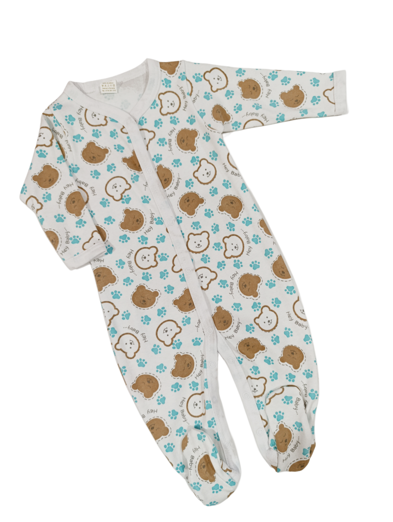 Închiderea cu capse pe toată lungimea facilitează îmbrăcarea și schimbarea rapidă a bebelușului, oferind un plus de confort pentru părinți. Materialul 100% bumbac este respirabil, moale și foarte plăcut la atingere.