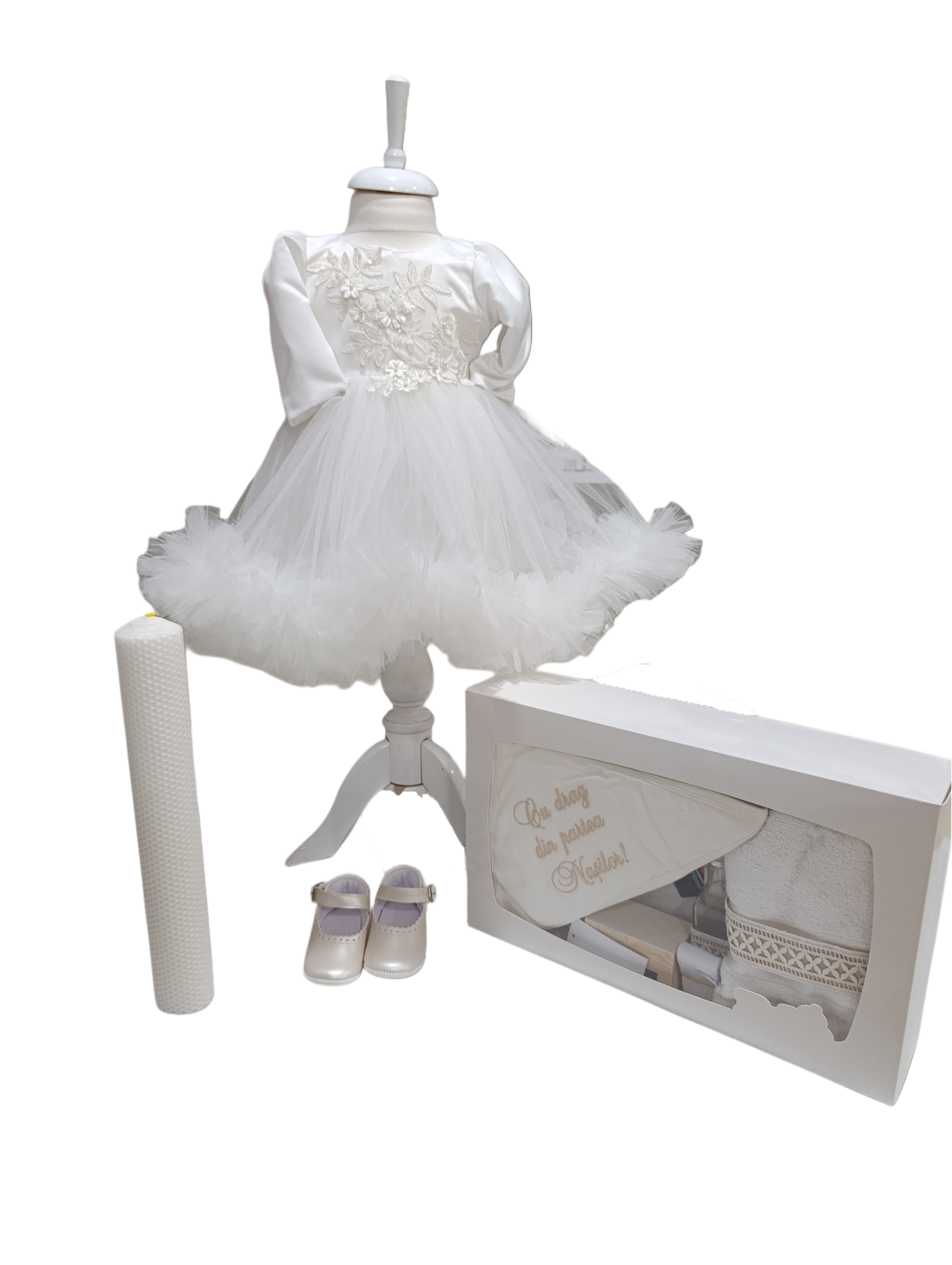 Produsul este fabricat în România, cu atenție la detalii și finisaje de calitate superioară, asigurând confortul și libertatea de mișcare pentru cei mici. Rochița este disponibilă în culoare albă, având un aspect elegant și festv, perfectă pentru micile prințese.
